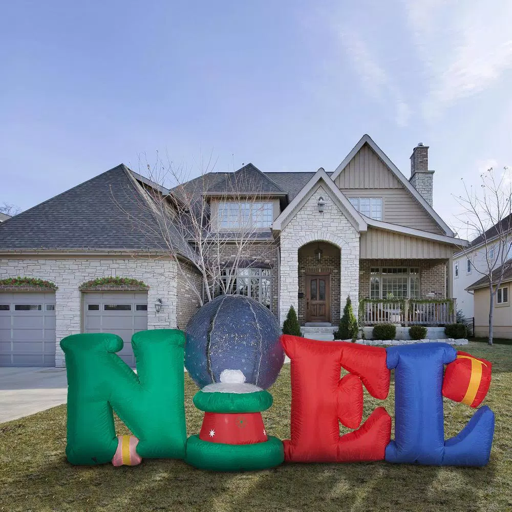 Celebrate Christmas in a big way this year with prelit jumbo inflatables by Fraser Hill Farm. Choose from our large assortment of festive airblown inflatables to create an unforgettable holiday scene. Brighten your lawn, garden, backyard, open porch, or deck with this joyous NOEL greeting featuring an animated snow globe. Inflate the magic of your seasonal light show, party display, or family celebration with this eye-catching decoration, certain to give your friends and family a warm welcome. You won’t need to give directions. With this blow-up inflatable, your guests will easily find your home. Setup is quick and easy. Plus, everything you need is included in your package – air blower, ropes, stakes and storage bag. Unpack it, plug it in, stake it down, then enjoy as the fun unfolds. For unique props to celebrate the Holidays, count on quality products from Fraser Hill Farm.