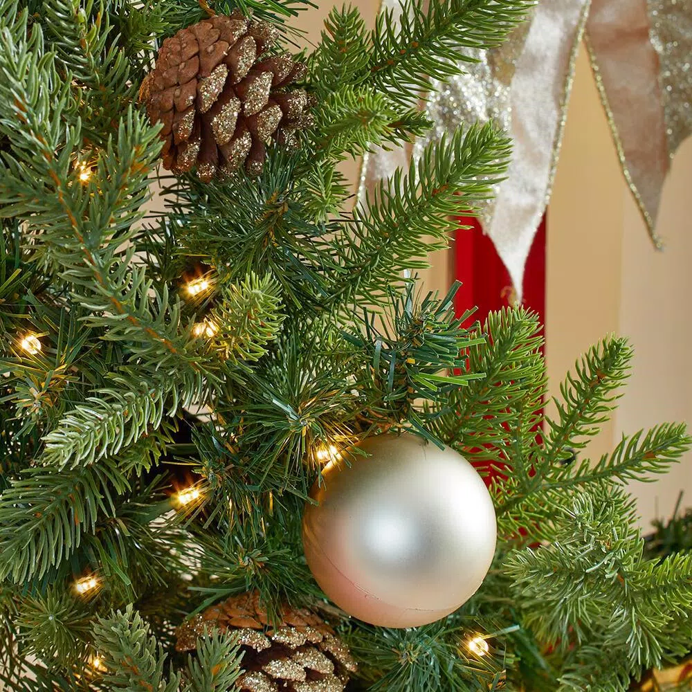 Light up the holidays with this Norway Gold artificial Christmas wreath by Home Holiday Accents. Illuminated with 35 warm white lights, the natural-looking wreath is perfect for above your fireplace or a stairway rail. It has champagne and gold ornaments, pine cones and a lacy ribbon. Its long-lasting LED bulbs use up to 80% less energy than incandescent lighting. This pre-lit garland is rated for indoor and outdoor covered use and uses 3 AA batteries (not included).