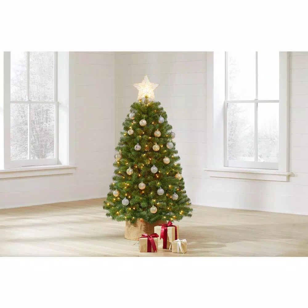 Ready for your favorite holiday ornaments, this 4.5 in. Artificial North Valley Spruce Tree with Clear Lights is the perfect addition to your holiday decor. Each tree features 398 hinged lifelike branch tips that assembles in minutes. Set includes a spare bulb and a durable metal stand.