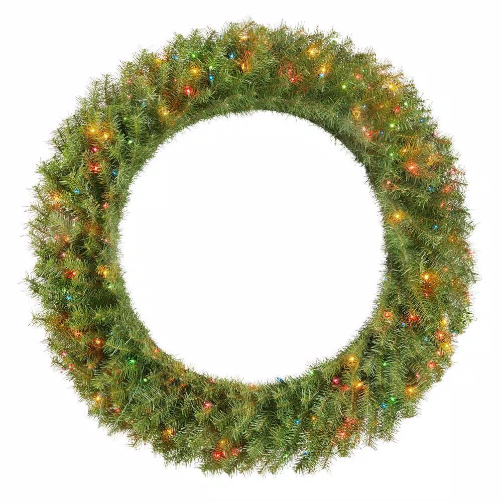 Perfect for making a bold statement this holiday season, this 48 in. Norwood Fir Artificial Wreath with 200 Multi-Lights is the perfect addition to your home decor. Each wreath features 714 lush branch tips with 200 multi-light LEDs that come ready to be displayed on your door, wall or window. For indoor and covered outdoor use.