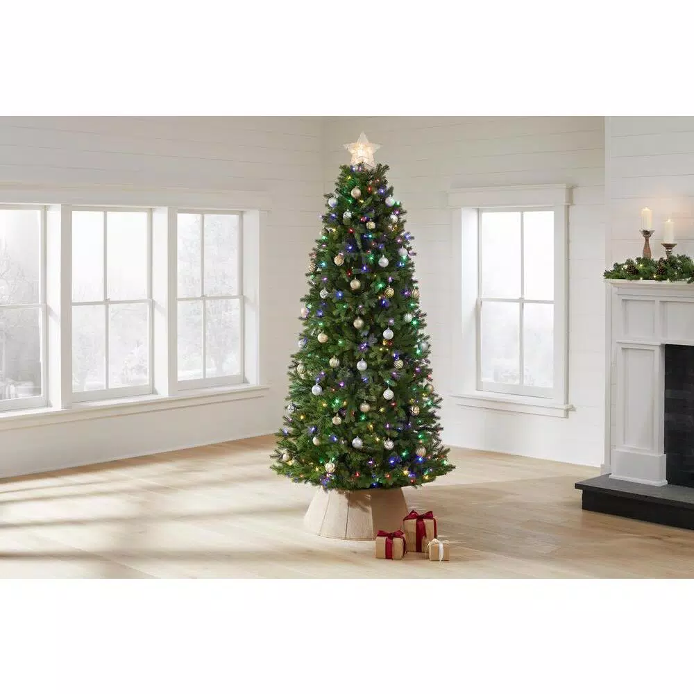 Add a beautiful touch of holiday cheer to your home with this 7.5 ft. Pre-Lit LED Verona Fir Slim Artificial Christmas Tree with 460 Color Changing Lights. Each tree features memory wire branch tips that keep their shape, even while in storage. Easily illuminate your entire 460 light tree with a single plug that attaches to the EZ Power Pole. Includes a durable and sturdy metal stand that folds for storage. The attached foot pedal allows you to turn the lights on and off without bending over.