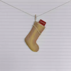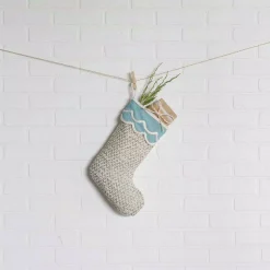 VHC Brands 15 In. Cotton Pearlescent Natural Tan Coastal Christmas Decor Stocking