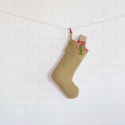 VHC Brands 15 In. Cotton Natural Festive Burlap Farmhouse Christmas Decor Stocking