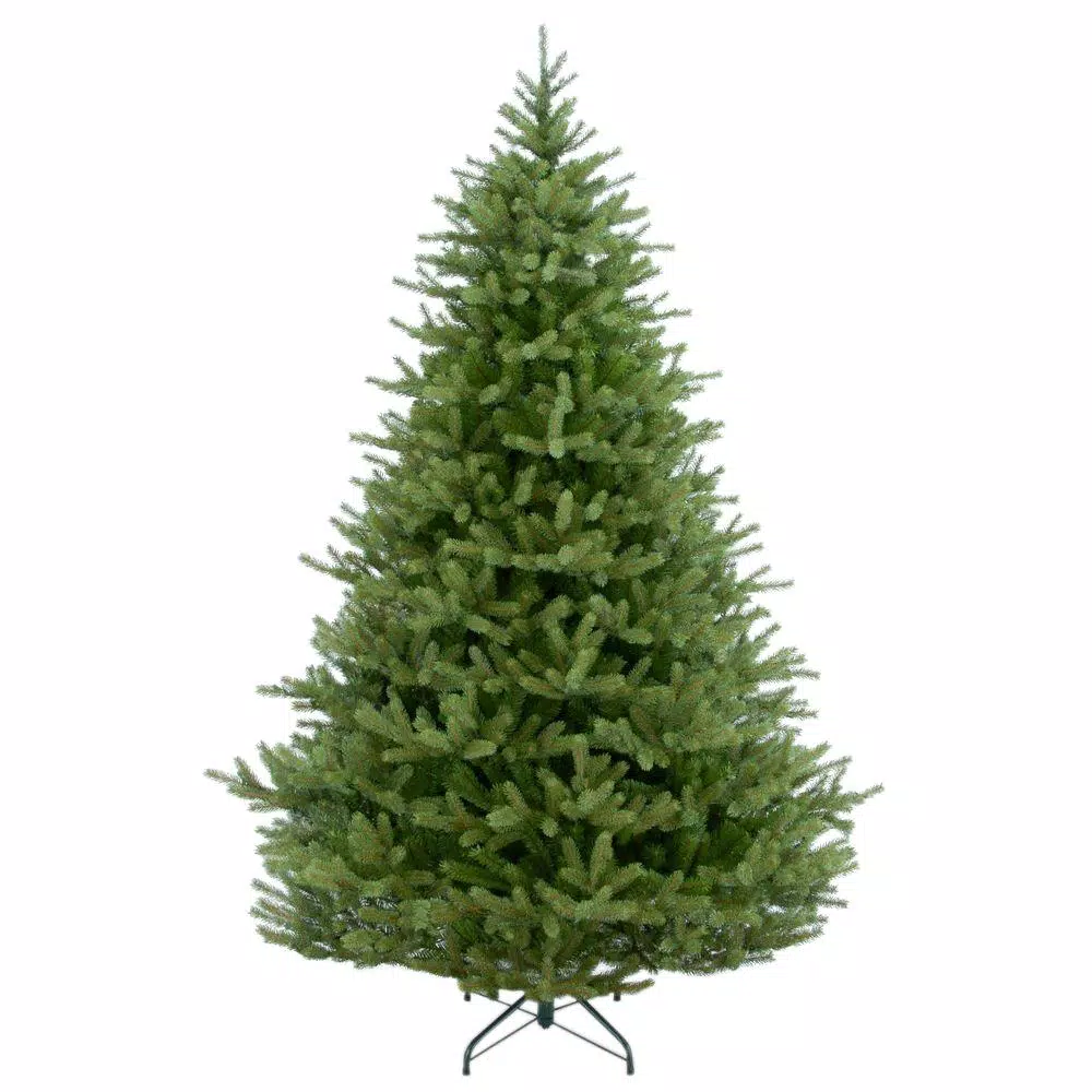 This Norway Fir tree features Feel Real branch tip technology, creating a tree with remarkable realism. These crush-resistant branch tips are molded from real tree branches for an authentic living tree appearance. This tree has a traditional cone shape and upswept branch design. Three section construction and hinged branches add to ease of assembly. Sturdy folding metal tree stand is included.