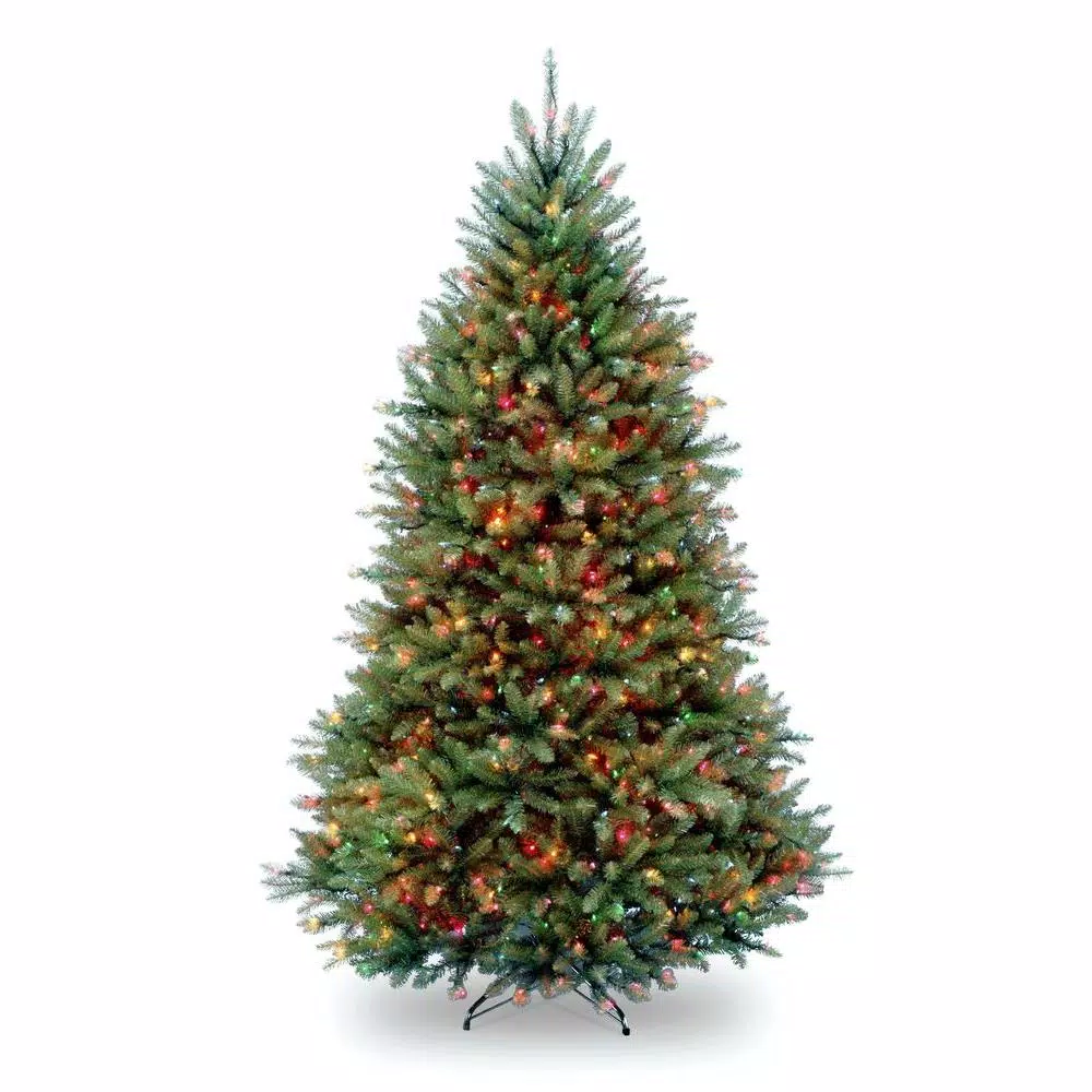 The Dunhill Fir is a full body tree featuring a generous number of branch tips for holding holiday trimmings. It is pre-strung with 750 multicolor lights that remain lit even if a bulb burns out. This three section tree features hinged branches for ease of assembly. Sturdy folding metal tree stand is included.