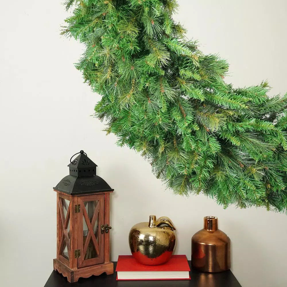 This wreath is beautifully accented with a lush mix of foliage. Longer needle pine tips have two-tone green color which are mixed with shorter light green tips for extra dimension and real beauty. The unlit wreath is mounted on a sturdy metal frame.