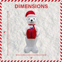 Fraser Hill Farm 8 Ft. Pre-Lit Plush Polar Bear Christmas Inflatable