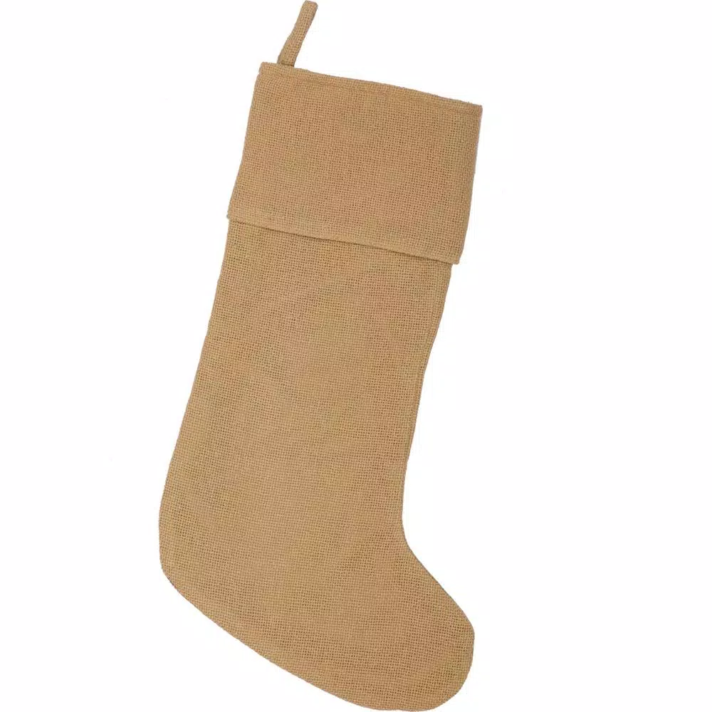 The Festive Natural Burlap Stocking is unadorned and waiting your personal touch. The cuff and body are lined in natural shade taffeta for added durability. This item was made with care to decorate your home for many years.