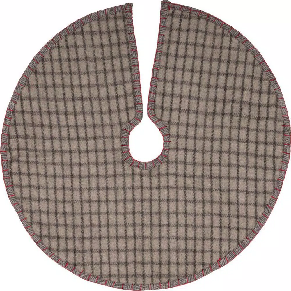 Dress up your tree this year with the Anderson Patchwork Mini Tree Skirt. Notice the alternating patches of cherry red, iron grey, and marshmallow plaid on the herringbone weave felt. The skirt is accentuated with tasteful red whip stitching as a finishing touch. Reverses grey/beige and marshmallow windowpane check felt.