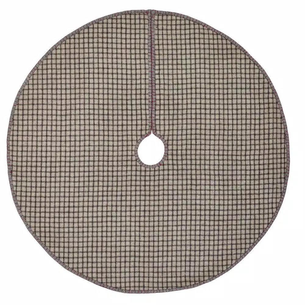 Dress up your tree this year with the Anderson Patchwork Tree Skirt. Notice the alternating patches of cherry red, iron grey, and marshmallow plaid on the herringbone weave felt. The skirt is accentuated with tasteful and red whip stitching as a finishing touch. Features 3 grey button closures. Reverses grey/beige and marshmallow windowpane check felt.
