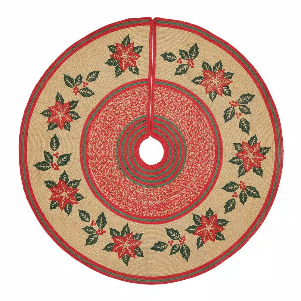 Nothing says Christmas like the beautiful poinsettia. Traditional poinsettias and holly berries are stenciled in holly berry red and forest green on natural braided jute. This item was made with care to decorate your home for many years.