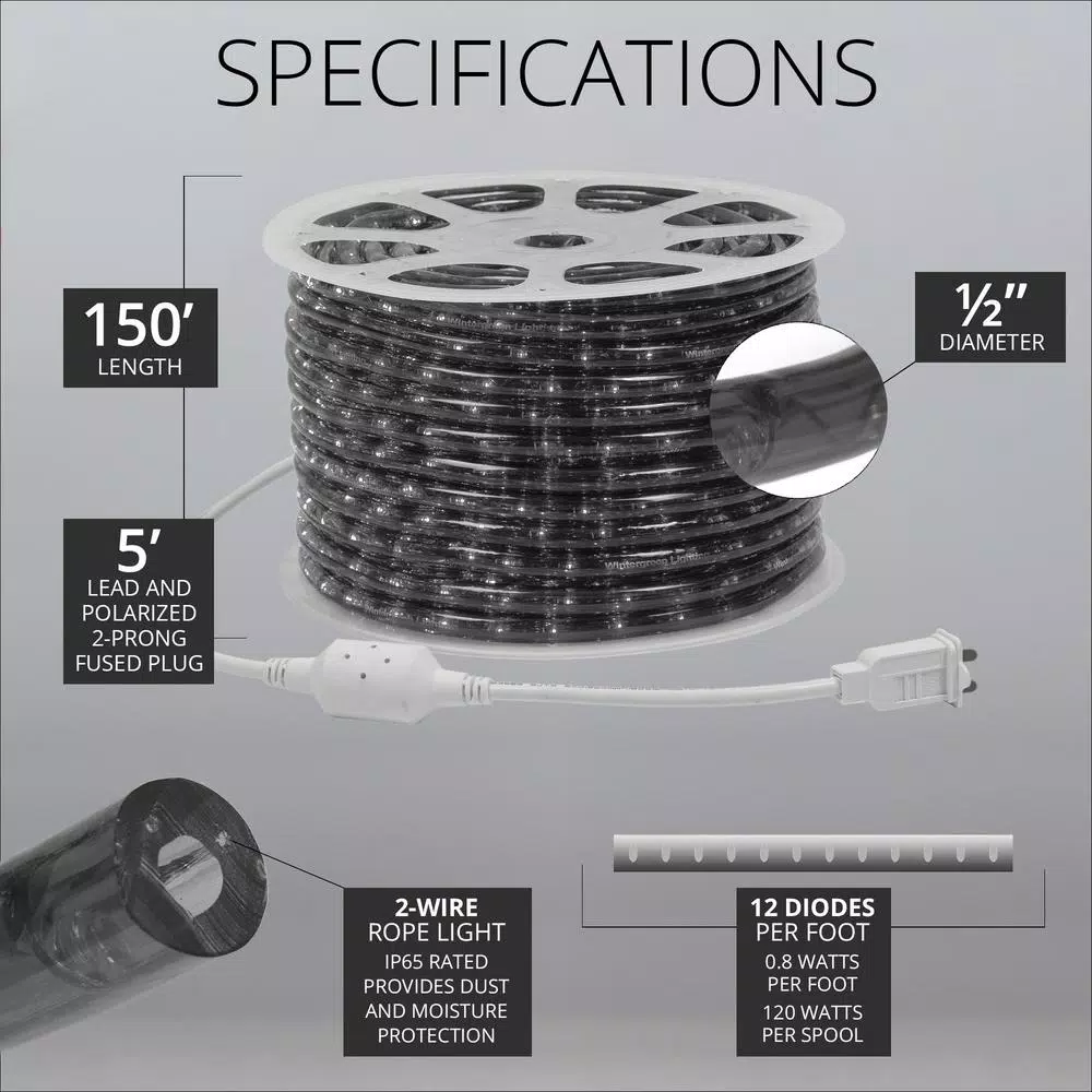 - 120-Volt 2-wire round LED rope light is popular for all kinds of general and holiday lighting uses